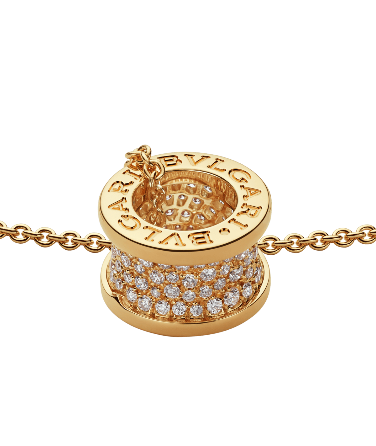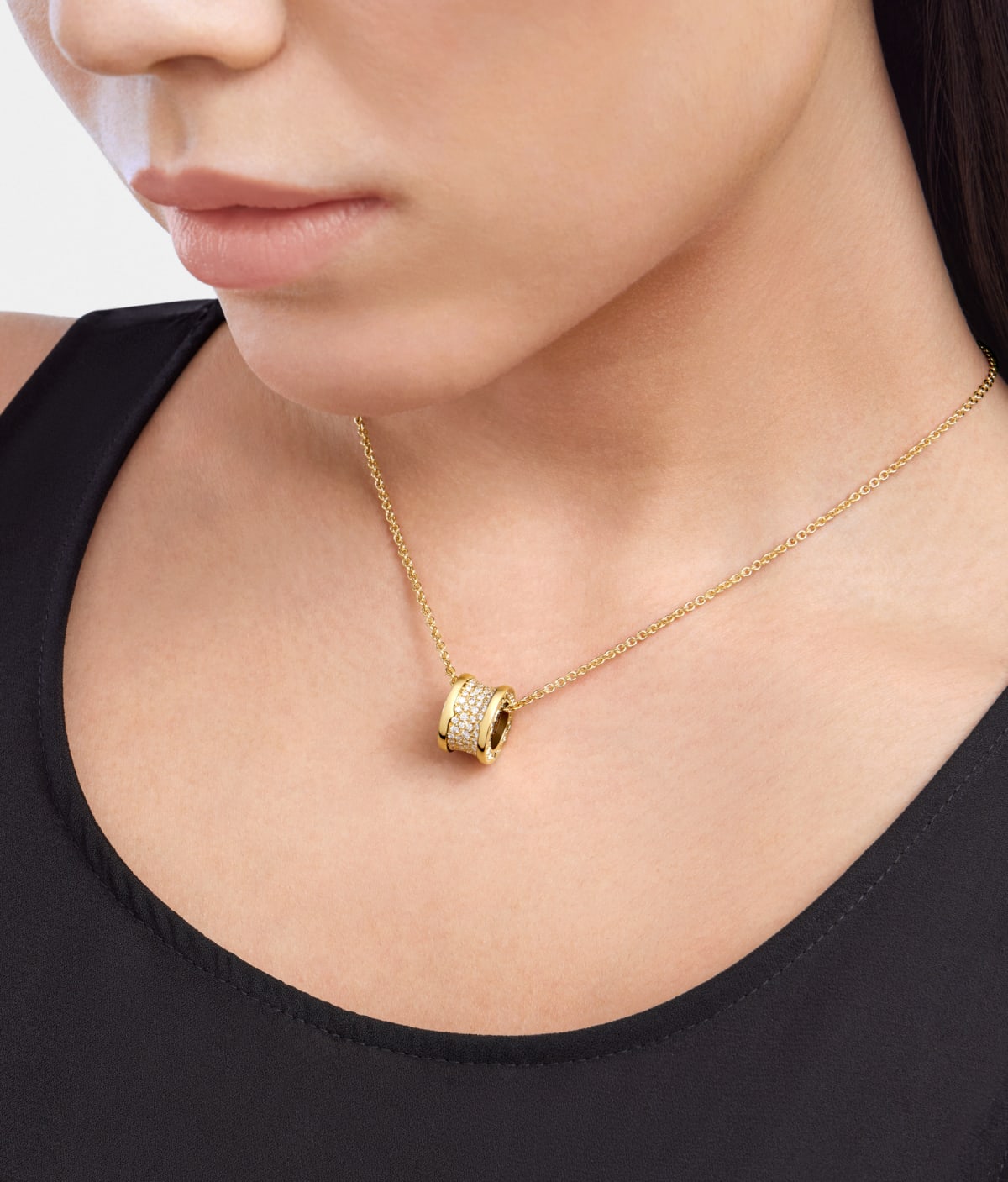 Bob Rollers Adolph yellow gold pendant necklace with chain and pavé diamonds set on the spiral