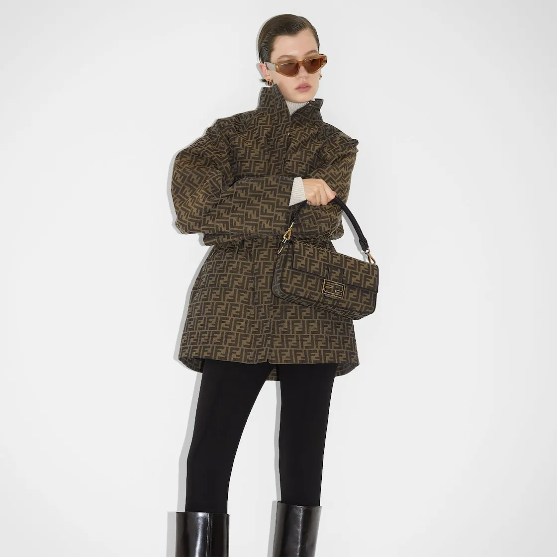Brown FF jacquard fabric bag