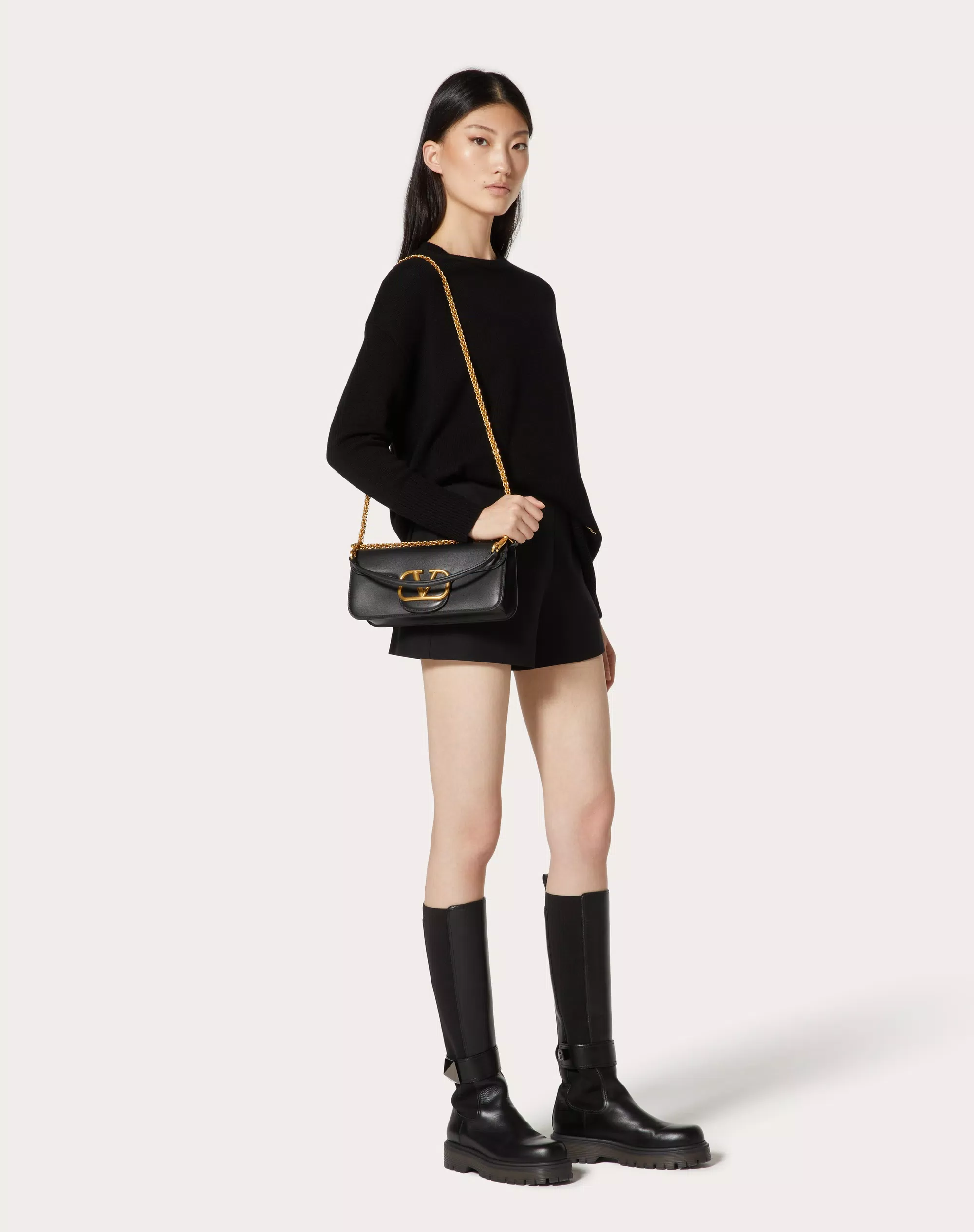 VALENTINO GARAVANI LOCÒ CALFSKIN SHOULDER BAG BLACK
