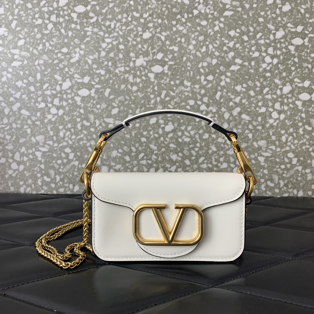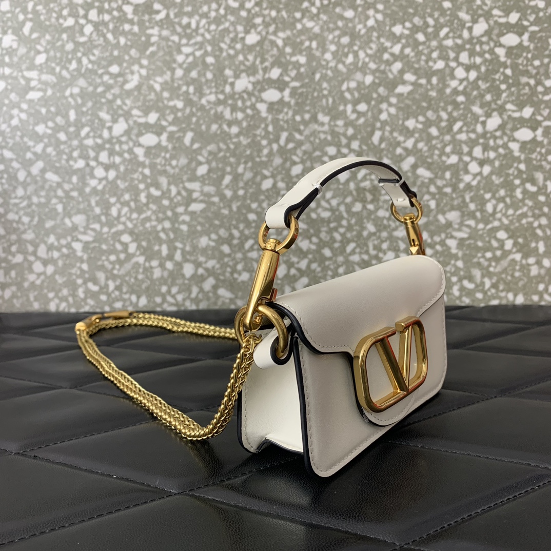 VALENTINO GARAVANI LOCÒ SMALL SHOULDER BAG IN CALFSKIN LIGHT IVORY