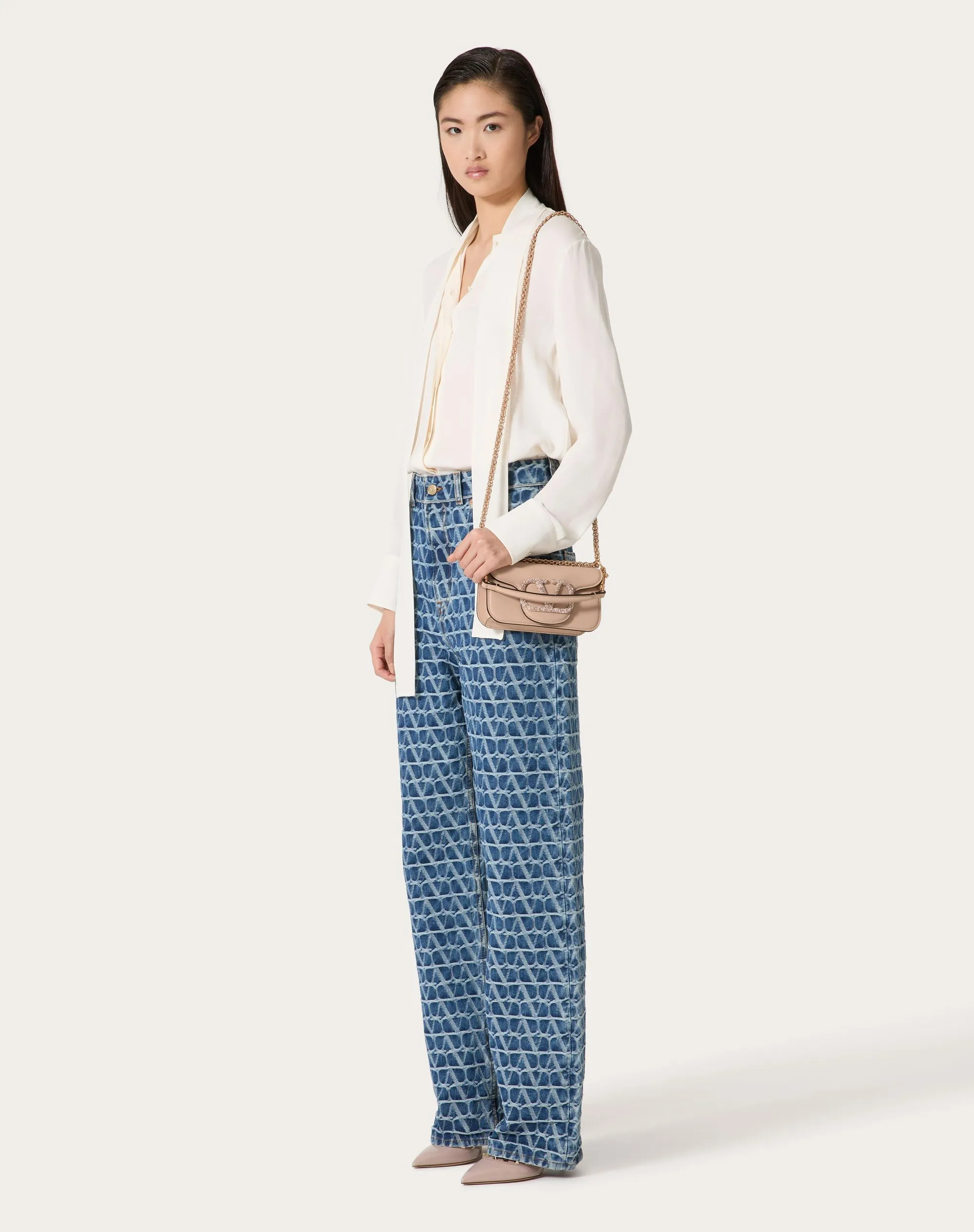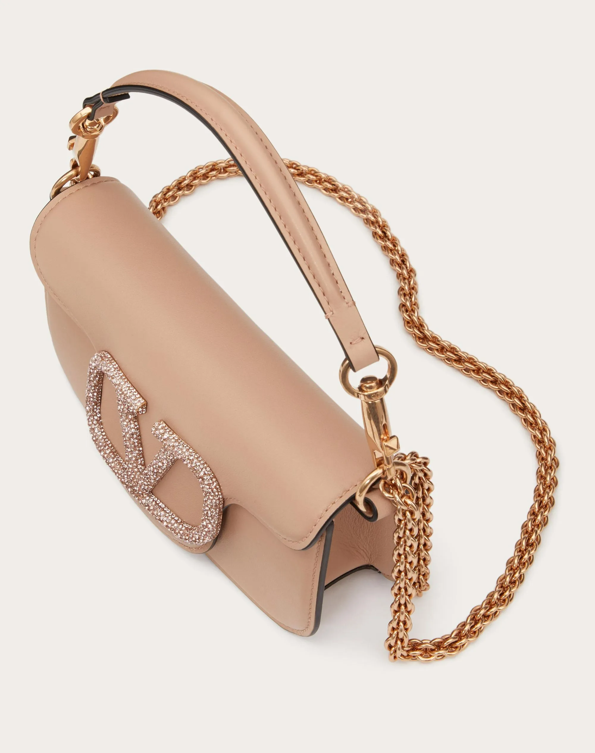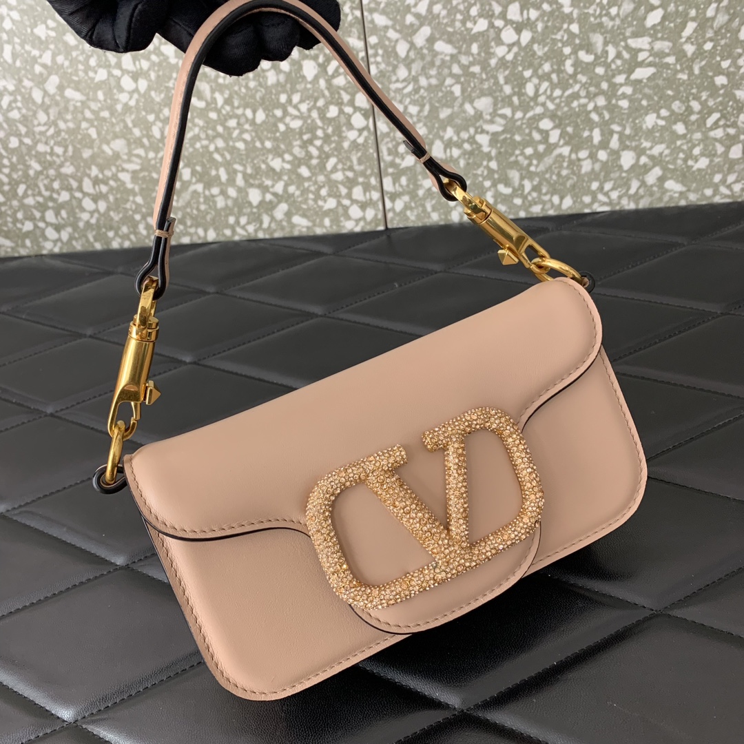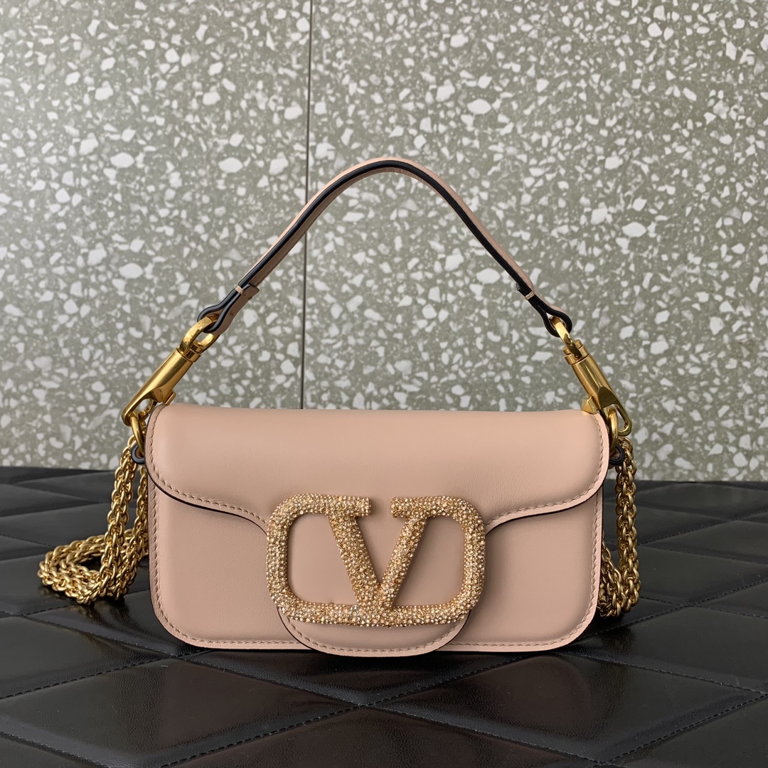 VALENTINO GARAVANI LOCÒ SMALL SHOULDER BAG WITH JEWEL LOGO ROSE CANNELLE